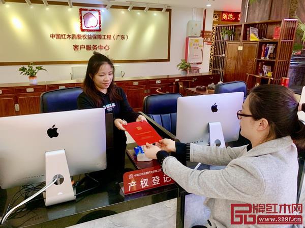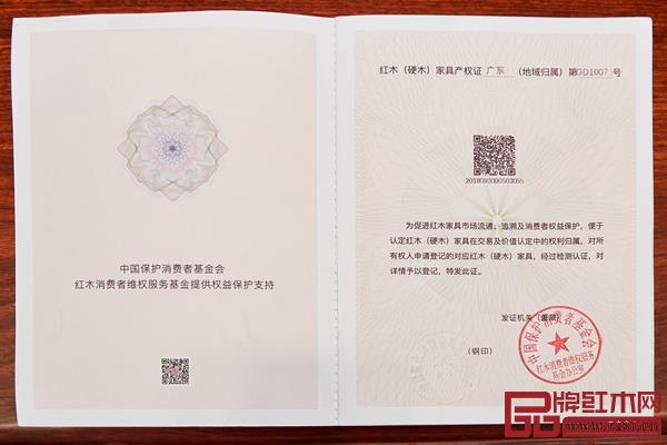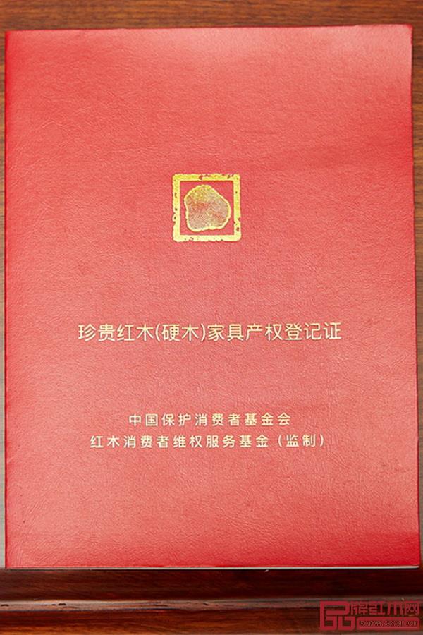 居典紅木家具 “闖三關(guān)”后,一本名為《珍貴紅木(硬木)家具產(chǎn)權(quán)產(chǎn)區(qū)登記證》的紅色證書將送到消費者手中