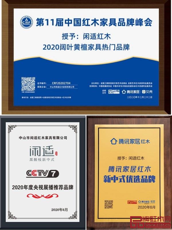 在品牌勢能的加持下,閑適紅木逐漸嶄露頭角,獲得“2020闊葉黃檀家具熱門品牌”、 CCTV展播品牌、騰訊家居優(yōu)選品牌等榮譽,躋身黑酸枝新中式的名企行列。