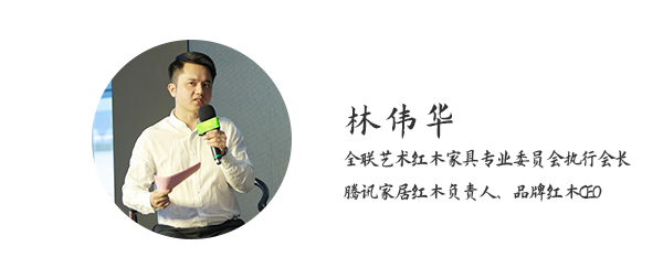 全聯(lián)藝術(shù)紅木家具專業(yè)委員會執(zhí)行會長,騰訊家居紅木負責人、品牌紅木CEO林偉華作為兩場論壇主持人,與行業(yè)大咖嘉賓一同對時下國潮家居與中式紅木發(fā)展交流感悟,分享經(jīng)驗。