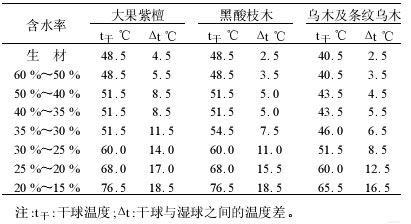表 紅木常規(guī)窯干干燥基準(zhǔn)