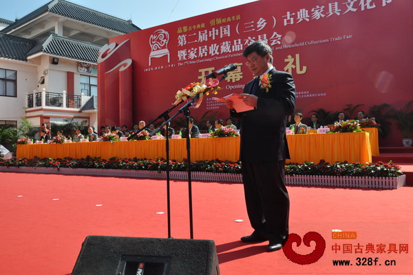 10月28日上午,廣東省中山市三鄉(xiāng)巨龍古玩城內(nèi)彩旗飄揚(yáng)、鑼鼓喧天、貴賓云集、熱鬧非凡,第二屆中國(guó)(三鄉(xiāng))古典家具文化節(jié)暨家居收藏品交易會(huì)就在這一片歡騰中盛大開(kāi)幕了。這一天,全國(guó)紅木古典家具業(yè)之泰斗齊齊亮相,政商名流共襄盛舉,海內(nèi)外紅木家具愛(ài)好者齊聚一堂,共享這份古典文化的饕餮盛宴。