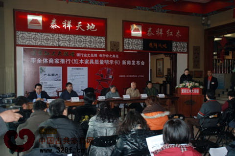 出席新聞發(fā)布會的領(lǐng)導和嘉賓有中國林業(yè)科學研究院木材工業(yè)研究所副研究員、紅木國家標準的第一起草人楊家駒先生,中國林業(yè)科學研究院木材工業(yè)研究所副研究員,中國木材流通協(xié)會專家委員會專家劉鵬先生,京作紅木技藝傳人、紅木高級制作技師王世平先生,北京市工商聯(lián)收藏品行業(yè)商會副會長、北京愛家紅木大觀樓、愛家國際收藏品市場總經(jīng)理王艷女士,北京市工商聯(lián)收藏品行業(yè)商會秘書長陳鵬先生,北京愛家紅木大觀樓、愛家國家收藏品市場總經(jīng)理助理、企劃總監(jiān)潘團結(jié)先生等。