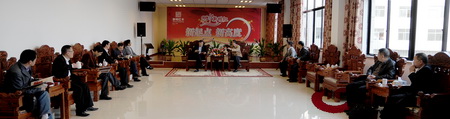 領(lǐng)導(dǎo)嘉賓在新明接待大廳聽取新明公司工作匯報(bào)
