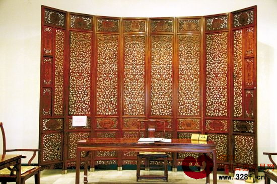 跨入空曠的空間,迎門之作是一件清式檀香紫檀地座屏,用料達六千余斤,歷時三年而制成,屏心浮雕題材內容取自于著名的《清明上河圖》,情節(jié)雕刻精細入微,極富情趣。此屏座用料大氣奢華,工藝精嚴細致,品韻富麗華美,極具藝術欣賞性與投資收藏價值,可謂秉承清代宮廷家具之精髓而創(chuàng)新設計之杰作。如此精品在典藏館里可謂是比比皆是,數(shù)不勝數(shù)。又比如位于二樓的一件明式黃花梨官帽椅,選料華美,木紋自然瑰麗,工藝精良,線條生動流暢,整體呈現(xiàn)出大方氣勢。在這樣一個陽光明媚的下午里,能夠漫步在伍氏興隆家具藝術典藏館里邊悠閑地欣賞這些藝術珍品,邊聽伍炳亮先生講述他和他的家具的趣事,不可不說是人生一大享受。