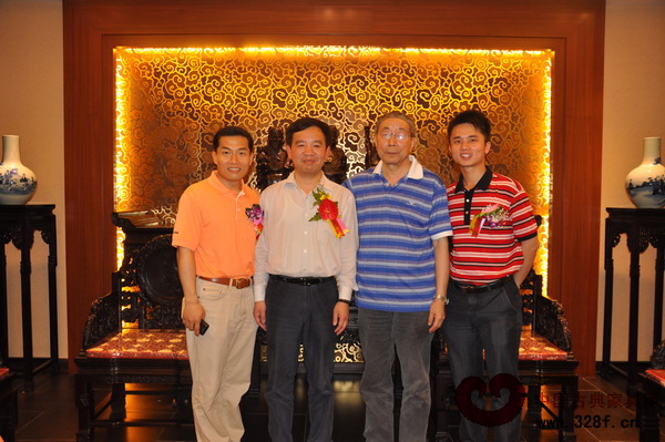 中山市家具協(xié)會(huì)秘書(shū)長(zhǎng)鄧廣森(左一)、南京林業(yè)大學(xué)“家具與工業(yè)設(shè)計(jì)學(xué)院”院長(zhǎng)吳智慧(左二)、大涌紅木家具協(xié)會(huì)顧問(wèn)曹新民、中國(guó)古典家具網(wǎng)CE0林偉華合影留念