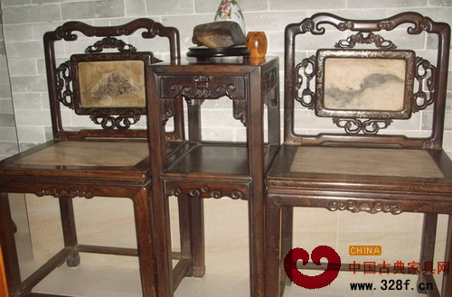 秀寶作品:老家具參賽貼(嵌銅片圖紋酸枝家具)