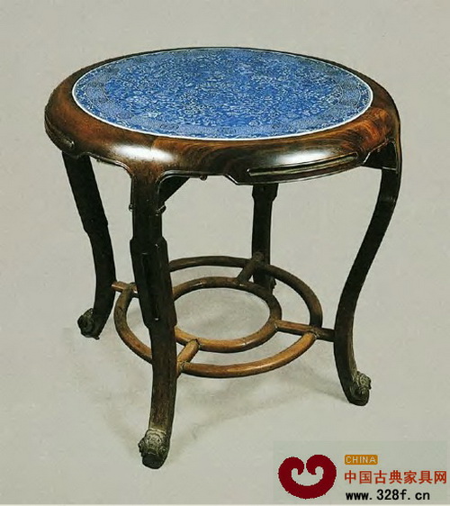 名稱:清中期 紅木青花花卉瓷面圓桌
