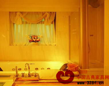 衛(wèi)生間的設(shè)計(jì)并無(wú)太大新意,給人的感覺(jué)就像賓館里的許多豪華套房一樣,干濕分離的設(shè)計(jì),進(jìn)口大理石的墻地面和浴柜臺(tái)面,依舊是個(gè)金而亮的空間。