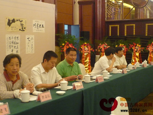 東陽(yáng)紅木家具協(xié)會(huì)秘書(shū)長(zhǎng)曹益民(左一)、中信紅木董事長(zhǎng)李忠信(左三)
