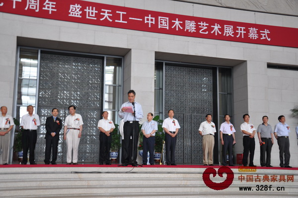 為紀(jì)念中國共產(chǎn)黨建黨九十周年,6月29日,由中國輕工業(yè)聯(lián)合會(huì)、中國國家博物館聯(lián)合主辦,中國工藝美術(shù)學(xué)會(huì)、中國工藝美術(shù)學(xué)會(huì)木雕藝術(shù)專業(yè)委員會(huì)、浙江東陽中國木雕城聯(lián)合承辦的“盛世天工——中國木雕藝術(shù)展”在中國國家博物館盛大開幕,展覽為期14天,至7月12日結(jié)束。