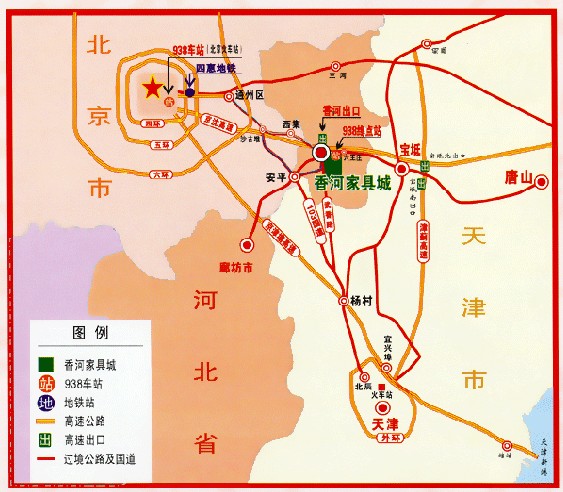 1.938路(總線)北京站→站前街→日壇路→大北窯→北苑→天下第一城→香河家具城(票價(jià)7元)