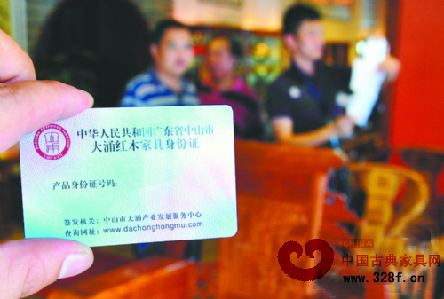 大涌紅木家具即將擁有屬于自己的身份證。據(jù)悉,大涌紅木家具識(shí)別系統(tǒng)已經(jīng)研發(fā)成功并開始投入使用,目前正向該鎮(zhèn)紅木生產(chǎn)企業(yè)推廣。每一套通過(guò)專家鑒定的家具,都會(huì)領(lǐng)到一張獨(dú)一無(wú)二的身份證。消費(fèi)者登錄中國(guó)大涌紅木家具信息網(wǎng)的相關(guān)專欄,可以看到此套家具的高清圖案,并核查材質(zhì)、規(guī)格等信息。