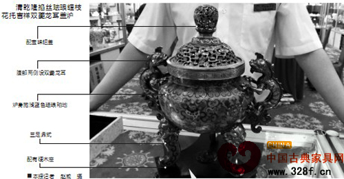 據(jù)拍賣會主辦方負(fù)責(zé)人介紹,這件香爐拍品曾是清乾隆宮廷御用的祭祀擺件,存世極少,目前,只有故宮博物院藏有同類器皿,在此次拍賣會的古董拍品中,這件香爐的起拍價(jià)為80萬元人民幣。