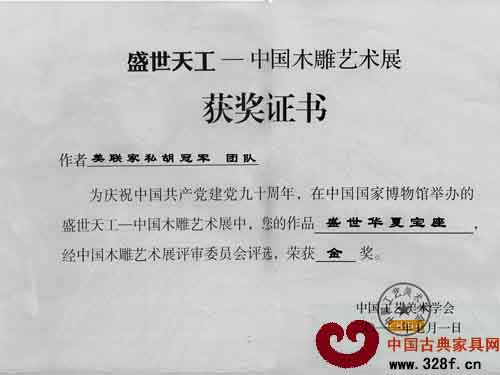 組委會中肯地評價了深圳美聯(lián)家私的大型藝雕組合作品《盛世華夏》,贊其立意高遠(yuǎn),匠心獨具,堪稱近年來中國工藝美術(shù)界和文化產(chǎn)業(yè)中極為罕見的杠鼎之作。經(jīng)過專家層層篩選,《盛世華夏》一路過關(guān)斬將,毫無懸念地奪得藝術(shù)展最高獎項——盛世天工金獎。