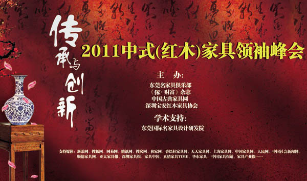 9月6日,由東莞名家具俱樂部、中國古典家具網(wǎng)《品牌紅木》雜志、《傢 財(cái)富》雜志、深圳寶安紅木家具協(xié)會聯(lián)合打造的“傳承與創(chuàng)新——2011中式(紅木)家具領(lǐng)袖峰會”將于東莞厚街現(xiàn)代國際會展中心盛大舉行。屆時(shí),行業(yè)領(lǐng)袖、論壇專家、名企代表、經(jīng)銷商、知名媒體人等近200余人齊聚東莞厚街,聚焦中式(紅木)家具產(chǎn)業(yè)與市場發(fā)展,深入探討中式(紅木)家具行業(yè)之惑和核心價(jià)值等問題,傳承中國傳統(tǒng)家具文化,探尋中式家具復(fù)興之路。