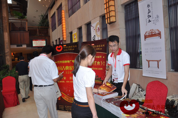 中國古典家具網(wǎng)、《品牌紅木》雜志位于開幕式會(huì)場入場處展位