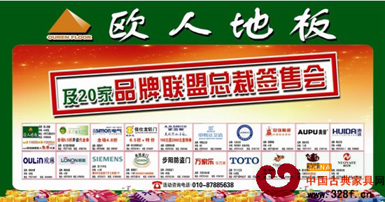 已經(jīng)連續(xù)四次由歐人地板發(fā)起組織的家居建材品牌聯(lián)盟總裁簽售活動(dòng),都取得圓滿成功。歐人地板定于10月30日,在北京集美家居大世界大紅門店建材六號(hào)廳,第五次舉辦大型品牌聯(lián)盟總裁簽售活動(dòng)。目前歐人地板北京近四十家專賣店,已經(jīng)開始了本次活動(dòng)的預(yù)售。屆時(shí),買歐人地板除了可以得到代金券的優(yōu)惠之外,交全款的顧客還可以到現(xiàn)場(chǎng)抽取彩電、電腦、冰箱、洗衣機(jī)等獎(jiǎng)品,特等獎(jiǎng)是全額免費(fèi)鋪裝歐人地板。紀(jì)念獎(jiǎng)也是豐富多彩,微波爐、電水壺、電餅鐺、吸頂燈、西蒙電器工具箱、拖把、保溫杯、夏涼被、浴巾、食用油、香枕,以及裝修用的花灑、馬桶等。