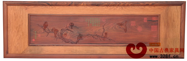 在鳳鳴岐山的展廳里,一塊“寒雀圖掛屏”讓每個(gè)觀者都停下腳步,為其“凝思”半天,并不斷稱“奇”。此掛屏也獲得了2011中山(隆都)紅木家具文化節(jié)暨精品紅木家具博覽會(huì)上的特別金獎(jiǎng),這是一份難得的至高榮譽(yù),也是中山市鳳鳴岐山紅木館高端藝術(shù)實(shí)力的明證。