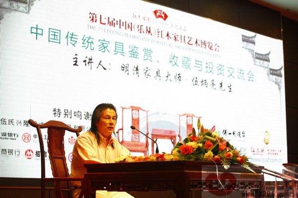 “中國(guó)傳統(tǒng)家具鑒賞、收藏與投資交流會(huì)”上,伍炳亮與大家交流收藏鑒賞經(jīng)驗(yàn)