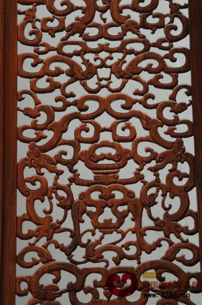 明式海南黃花梨透雕螭龍紋八扇圍屏局部圖