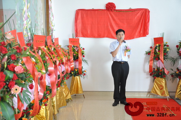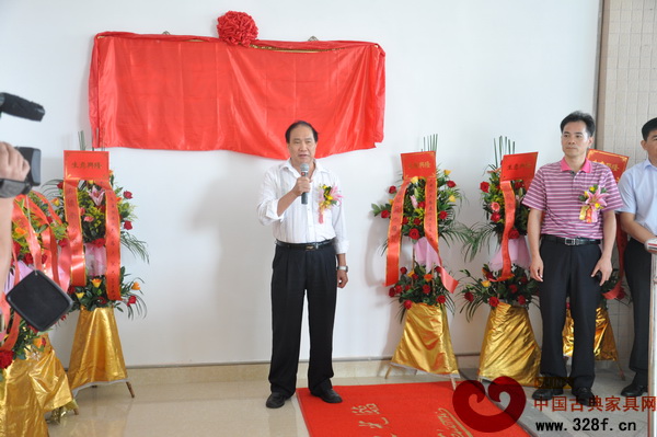 大涌鎮(zhèn)紅木家具協(xié)會(huì)會(huì)長(zhǎng)蕭照興為入駐典禮致辭