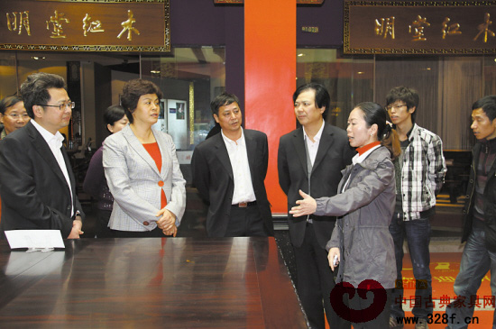 日前,國家工商總局副局長甘霖(左二)到中國木雕城調研,充分肯定市場的轉型升級,并對巧奪天工的木雕工藝品和古樸典雅的木雕紅木家具贊嘆不已。