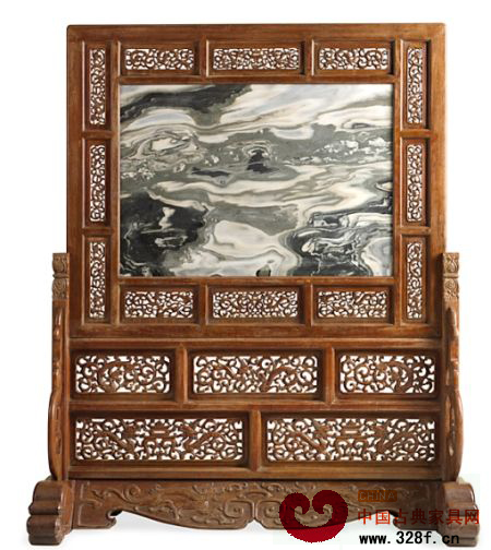 明式·黃花梨螭紋鑲理石插屏式地座屏