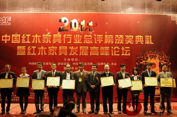 2011年12月30日,備受業(yè)界關注的2011中國紅木家具行業(yè)年度總評榜頒獎典禮暨紅木家具行業(yè)發(fā)展高峰論壇系列活動在廣東省中山市喜來登酒店四樓聚福廳落下帷幕。此次頒獎典禮共頒發(fā)了55項大獎,浙江中信紅木有限公司不負眾望,得到了行業(yè)專家、業(yè)界同仁、消費者的一致肯定,榮獲“2011最具影響力的中國紅木家具十大品牌”,董事長李忠信再次被評為“中國紅木家具行業(yè)風云人物”。