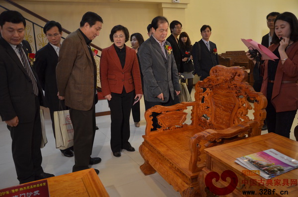 與會嘉賓共同鑒賞隆都紅木家具新品
