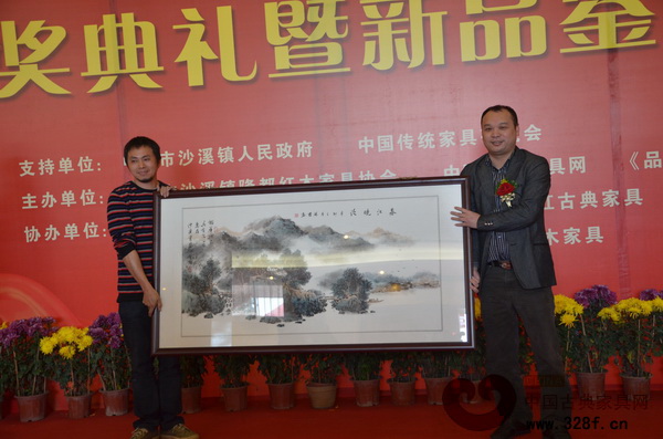 中山市沙溪書畫協會副會長高定國先生為沙溪隆都紅木家具協會致送山水畫一幅