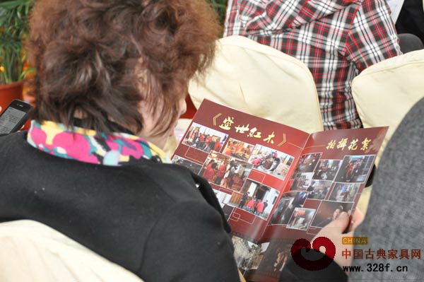 參展者認(rèn)真的翻閱《盛世紅木》宣傳冊