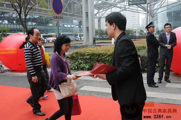 我站工作人員正在積極派發(fā)《品牌紅木》雜志