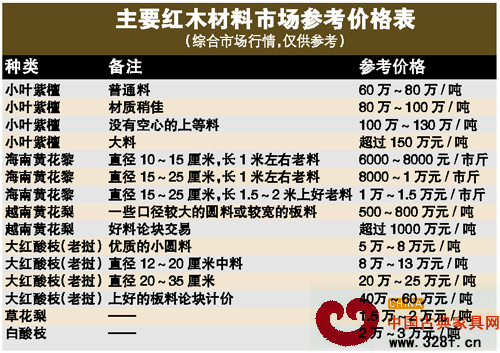 無論什么情形下,海南黃花梨、越南黃花梨的價(jià)格一直保持平穩(wěn)上漲態(tài)勢(shì),2012年春節(jié)后大紅酸枝價(jià)格也出現(xiàn)了小幅回漲?!斑@與材料的供求情況息息相關(guān)?!蔽楸琳f,目前全國(guó)共有一萬多家高檔仿古家具企業(yè),其中三分之一的企業(yè)都使用紅酸枝木料,按每家企業(yè)每年平均耗用50噸至100噸來計(jì)算,那么一年內(nèi),全國(guó)仿古家具企業(yè)所耗用的紅酸枝材料可多達(dá)三十至四十萬噸,紅酸枝的供應(yīng)量完全滿足不了市場(chǎng)的需求。海黃和越黃的供應(yīng)量之小也決定了其材料價(jià)的不跌反漲。