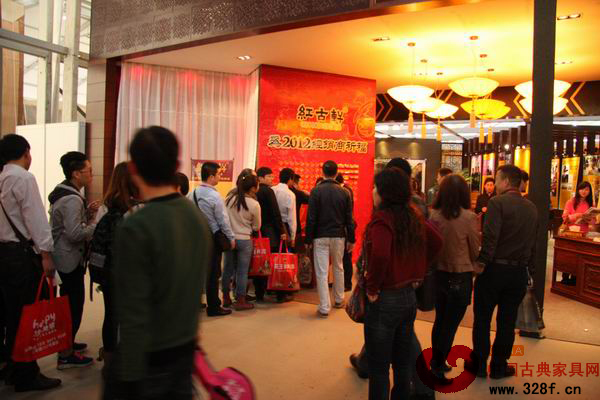 紅古軒雖為首次登陸名家具展,卻一出場便博得滿堂喝彩,不少當場的參觀者發(fā)出感慨:不愧為最當紅的紅木家具企業(yè)。而這種感覺,置身于紅古軒的文化長廊亦能感同身受,現(xiàn)場異常火爆的氣氛讓每一位在場的觀眾都嘆為觀止。前來問詢相關獲獎情況、專賣店加盟情況的人群川流不息,絡繹不絕,就連工作人員也被里三層外三層的參觀者緊緊簇擁,等待著走進展位內(nèi)部的參觀者更是排起了長隊。如果說第27屆名家具展期間是南國三月東莞的人海時段,那么此時的紅古軒展位則也成了真正的人海展位。