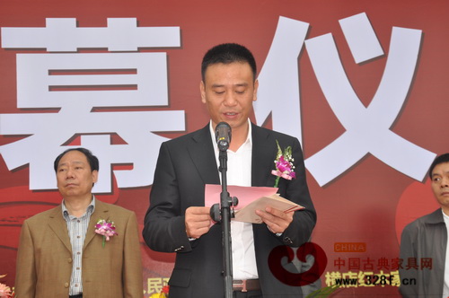 橫店紅木家具中心董事長張志權在開幕儀式上致辭