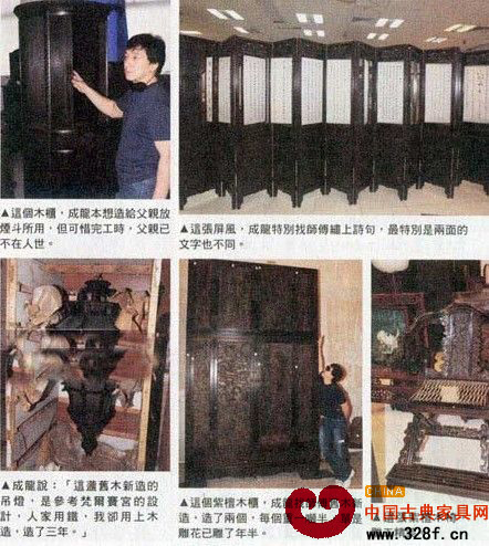 成龍有多少身家難以估計(jì),但單是計(jì)算擺滿他的香港清水灣片場貨倉的紫檀木珍藏,成龍就無不得意地說:“我想沒有數(shù)十億那么多,數(shù)億啦!”紫檀木稀有,是世界貴重木料之一,素有“一寸紫檀一寸金”的說法,一雙紫檀木筷子,動輒要2000多元,去年蘇富比在香港拍賣一張清代紫檀木雕方桌,近280萬港幣成交。據(jù)了解,成龍這數(shù)以萬計(jì)的紫檀木珍藏,已收藏了20多年,大部分源自九間明朝古屋古廟及古戲臺,價(jià)值連城。并且紫檀木本身就有鎮(zhèn)宅之功效。