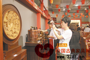 “本次參展不僅在展館的設(shè)計陳列方面得到了極大提升,參展商戶同樣經(jīng)過層層篩選,我們力圖把最具木雕城特色的商家和產(chǎn)品呈現(xiàn)給參觀者?!蹦镜癯菭I銷招商部的負(fù)責(zé)人介紹說。木雕城工作人員的辛勤努力,在展會優(yōu)秀作品的評獎和銷售方面得到了積極回應(yīng),本次木雕城組團參展的10家商戶共獲得三金二銀三銅的好成績。在銷售方面同樣形勢喜人:“年年香”所帶的樟木箱展品銷售過半,另收獲了50件樟木箱的訂單和50余件樟木箱的意向訂單;“富士工藝”成交達100多萬元,還有近200萬元的意向訂單正在洽談……談到本次展覽的參展效果,獲得金獎的萬家宜家具有限公司董事長吳明月滿臉喜悅,“沒想到第一次外出參展就收獲這么大,所帶的家具銷售一空,還接到了近10套紅木家具的訂單,多虧木雕城給我們經(jīng)營戶搭建了這么好的平臺!” (編輯 亞亞)