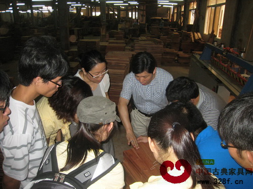 生產(chǎn)廠長正在給學子們詳細講解紅木家具生產(chǎn)與技術(shù)知識