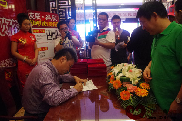 下午兩點鐘,友聯(lián)·為家總裁及相關(guān)領(lǐng)導(dǎo)準(zhǔn)時出現(xiàn)在現(xiàn)場,并當(dāng)場宣布廠慶特惠價為前所未有的“折上折”,由其親自簽售!參與活動的消費者紛紛現(xiàn)場訂購,店內(nèi)排起了長龍,場面十分熱鬧!而友聯(lián)·為家特聘高級營銷顧問、中國家具協(xié)會高級培訓(xùn)導(dǎo)師、國家一級企業(yè)培訓(xùn)師代海成老師作為此次活動的特邀嘉賓也來到現(xiàn)場,為大家傳授紅木家具的相關(guān)知識,傳播中國紅木文化。隨后,活動現(xiàn)場進(jìn)行的抽獎、競拍等各種豐富多彩的節(jié)目,將活動現(xiàn)場推向了一個又一個高潮。