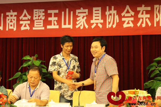 據(jù)東陽市玉山商會暨玉山家具協(xié)會東陽紅木分會顏純旺會長介紹說,在東陽從事紅木家具生產(chǎn)與制作的玉山人近千名,成立商會就是考慮到目前紅木行業(yè)的發(fā)展行情和現(xiàn)狀,招工難、產(chǎn)品同質(zhì)化嚴(yán)重、價格惡性競爭等現(xiàn)象非常不利于行業(yè)的健康發(fā)展,需要有擔(dān)當(dāng)?shù)娜酥鲃诱境鰜?,凝聚鄉(xiāng)情,團(tuán)結(jié)互助,共享資源,共謀發(fā)展,與政府溝通交流,為大家分憂解難,為紅木家具行業(yè)健康有序發(fā)展提供平臺、搭建橋梁。來自江西玉山縣、玉山縣紫湖鎮(zhèn)、玉山和東陽兩地工商聯(lián)、總商會的領(lǐng)導(dǎo)以及蘇州玉山家具協(xié)會的主管負(fù)責(zé)人以及玉山和東陽的紅木企業(yè)家們約80余人共同見證了這次盛典。(編輯 木溪)
