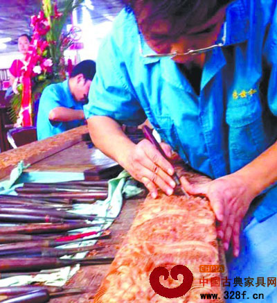 近年來,雕刻師傅的待遇迅速躥高也有一定的原因,盡管機械雕刻已經(jīng)被廣泛地運用到家具的制作過程當中,對于收藏價值和藝術價值比較看重的客戶,也較為傾向純手工雕刻的家具,好的雕刻作品意境生動,充滿動感和生命力,很多人在選購家具時 ,不光只盯著材質,其上的雕刻紋飾也是消費者選購的理由之一。