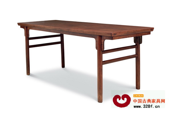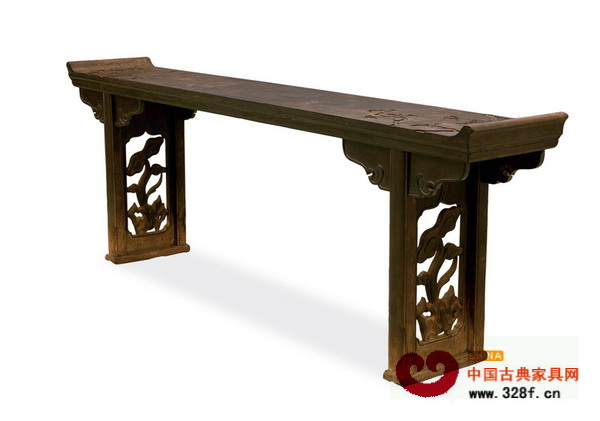 明末,黃花梨獨板雕靈芝紋嵌寶大翹頭案(780萬至1200萬港幣)此案為明(1368-1644)早期作品。案面采用黃花梨獨板,用材厚重,曾經(jīng)鑲嵌花卉、蜂蝶圖案。擋板用整料透雕靈芝紋,圖案生動活潑。此案用材豪放,雕飾生動考究。尤其是案面之鑲嵌處理,為存世僅見。