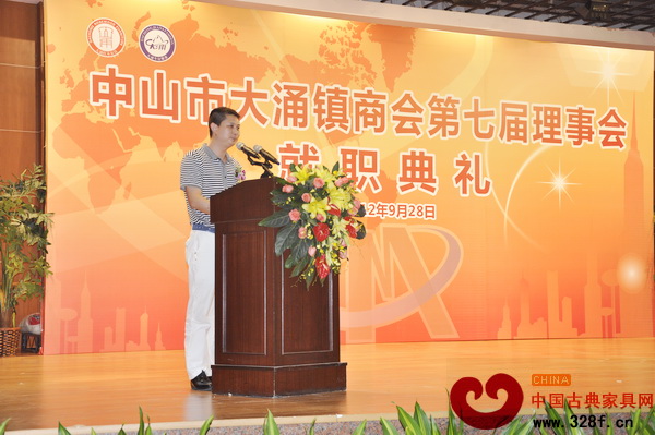 中山市紅古軒家具有限公司總經(jīng)理、大涌商會第七屆理事會常務副會長吳赤宇宣讀新一屆理事成員名單