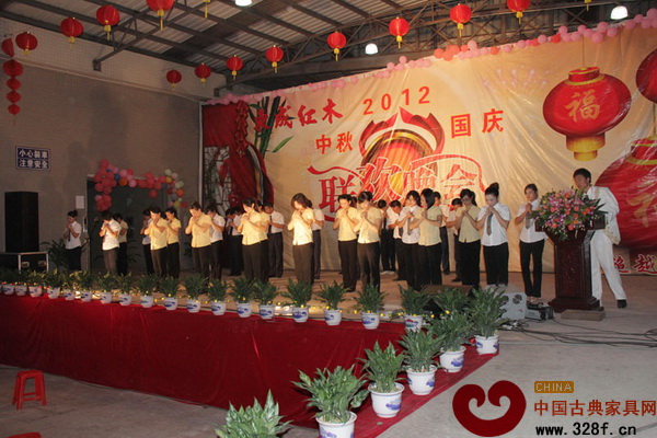 [摘要]9月29日,廣東省中山市大涌鎮(zhèn)東成家具有限公司(東成紅木)內(nèi)洋溢著一派節(jié)日的歡樂景象,一場“2012中秋國慶”聯(lián)歡晚會在這里隆重舉行。