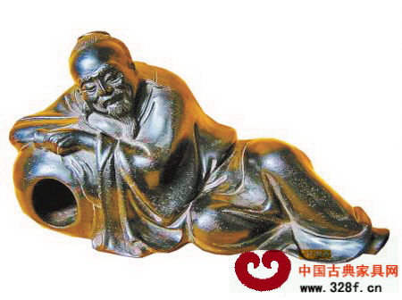 作為掌中珍玩,這件《李白醉酒》擺件除了構思奇巧,具有較高的文化內涵和藝術氣息外,其精妙之處更在于它的雕刻工藝難度極高。一般來說,圓雕作品的工藝水平遠超平面陰刻及淺浮雕作品,因為圓雕作品要求從不同角度觀賞,均須達到最佳的藝術效果,更何況是在木質十分堅硬的紫檀上完成的,其價值也就更不同一般。后來幾位專家也曾觀摩過老王收藏的這件《李白醉酒》擺件,都對它贊不絕口,認為它材質珍貴,工藝精湛,存世稀少,保存完好,具有極高的觀賞及收藏價值,是值得珍藏的好東西。