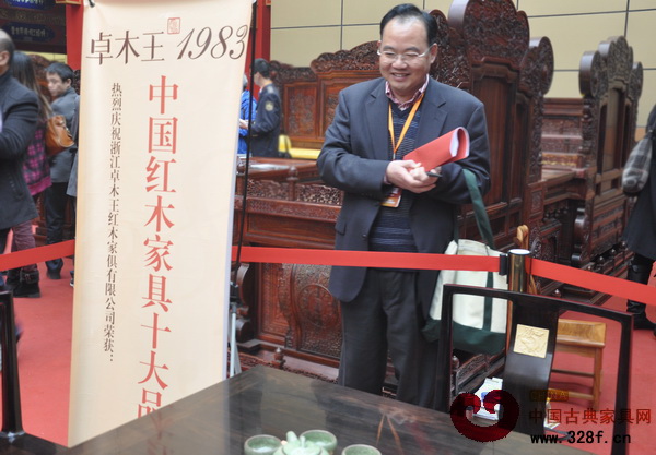 在第七屆中國(東陽)木雕竹編工藝美術(shù)博覽會上,2012年度東陽市木雕·紅木家具十大精品齊齊亮相,中國明清家具材質(zhì)研究專家周默在對十大精品評審時,盛贊浙江東陽卓木王紅木家具有限公司設(shè)計制作的“天圓地方”茶座,稱其為“十大精品中打磨工藝最到位的作品”。
