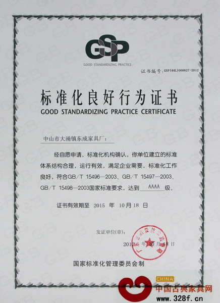 在紅木家具行業(yè),人們不得不注意到一個(gè)現(xiàn)象:生產(chǎn)效率低下、質(zhì)量不穩(wěn)定正嚴(yán)重制約產(chǎn)業(yè)健康發(fā)展,而解決這些問題的法寶正是“標(biāo)準(zhǔn)化”。中山市東成紅木家具有限公司花了前后一年的時(shí)間,用547項(xiàng)標(biāo)準(zhǔn)重新規(guī)范每一個(gè)生產(chǎn)和管理環(huán)節(jié),給自身戴上“緊箍咒”,從而提升產(chǎn)品質(zhì)量和生產(chǎn)效能。近日,該企業(yè)捧回由國家標(biāo)準(zhǔn)化管理委員會印制的標(biāo)準(zhǔn)化良好行為證書,成為廣東省首家通過4A級標(biāo)準(zhǔn)化良好行為認(rèn)定的紅木家具企業(yè),這也是企業(yè)標(biāo)準(zhǔn)體系國家標(biāo)準(zhǔn)的最高級別。