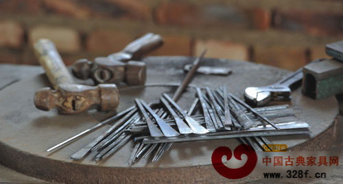 古人有云:“三分手藝七分家什”。仙作家具素有工藝精妙,形象生動,線條流暢之特點,有較高的雕刻藝術(shù)水準(zhǔn)。而這些作品都是由工藝精湛的匠人在虛實剛?cè)岬谋M情表現(xiàn)中發(fā)揮“用筆”,精微細(xì)雕才可成器??梢姡瑐鹘y(tǒng)的雕刻工具仍然有著很重要的地位,已是仙作家具文化之一。