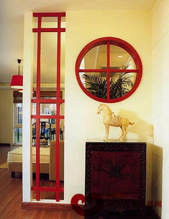 中式進門玄關效果圖:古色古香的玄關設計,充滿跳躍感