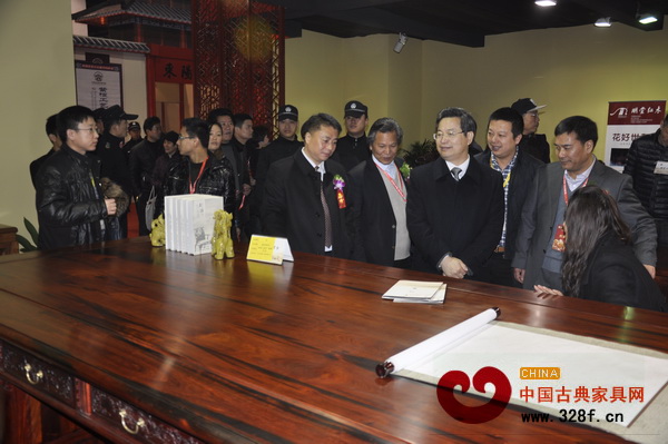 領(lǐng)導(dǎo)專家參觀明堂紅木展館